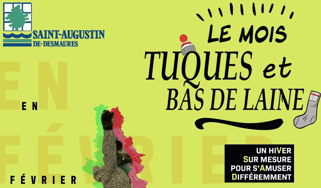 PLAISIRS D’HIVER. Malgré la pandémie, Saint-Augustin met sur pied et prolonge son initiative hivernale en décrétant février le «Mois Tuques et bas de laine». Son équipe des loisirs, de la culture et de la vie communautaire a redoublé d’efforts pour offrir une programmation diversifiée qui s’échelonne du 1er au 28 février 2021.