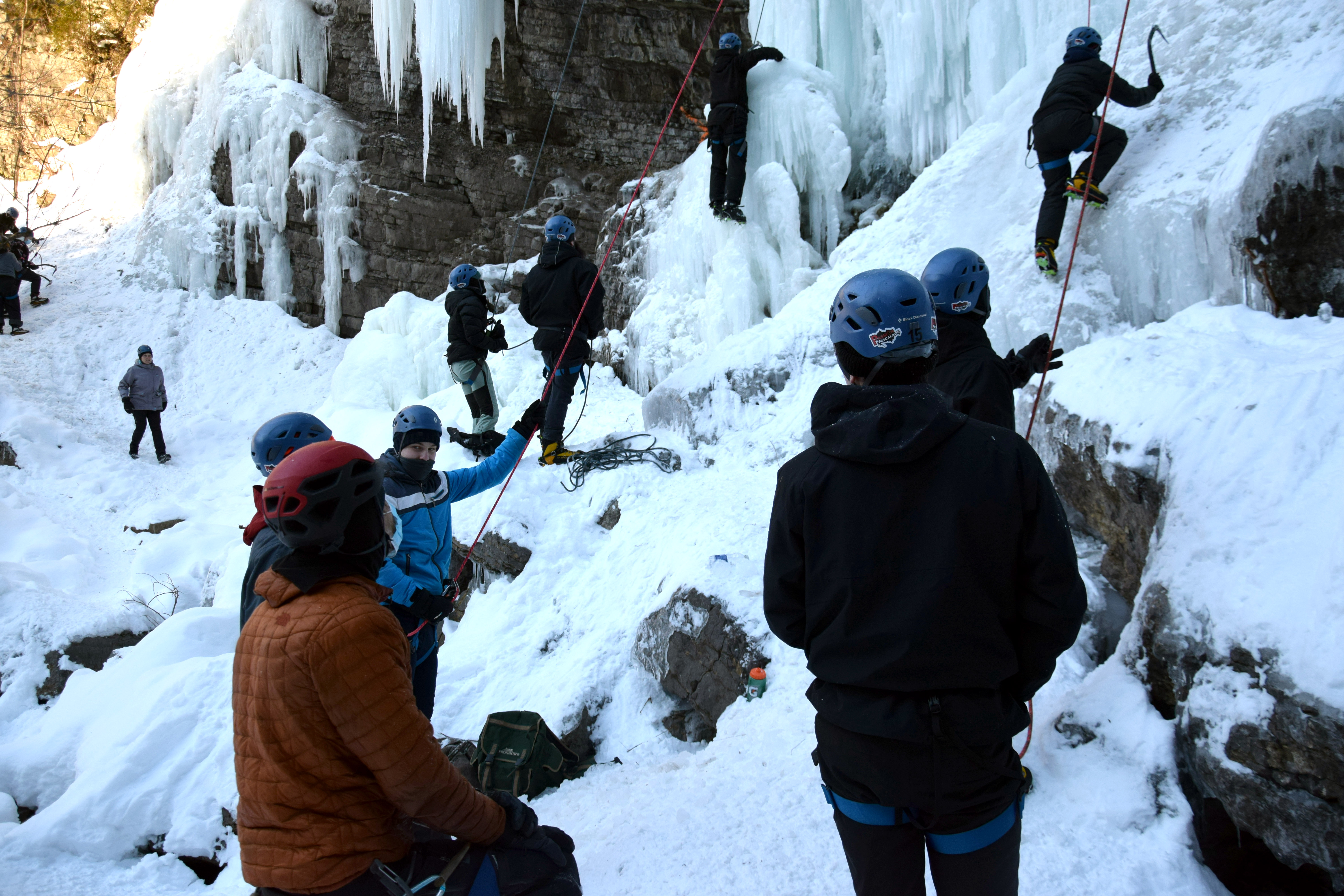 On dénombre quelques sites d’escalade de glace dans la région, dont celui situé à la chute Kabir Kouba à Wendake et un autre à Pont-Rouge. Quant au site à la chute Montmorency, attirant une bonne clientèle de grimpeurs, il n’est pas ouvert cette saison en raison des travaux importants qui se déroulent cet hiver au pied de la chute en vue de réaliser le projet l’Expérience chute.