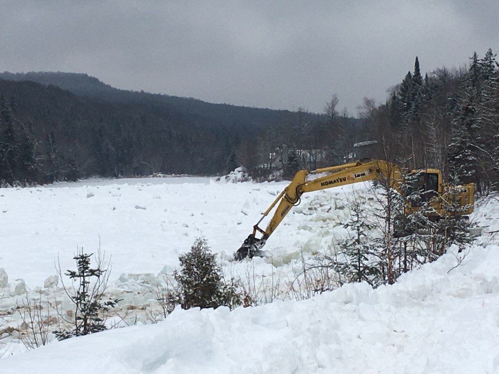 SÉCURITÉ. La municipalité de Sainte-Brigitte-de-Laval ne prend aucune chance avec un embâcle qui s’est créé le 1er février à la hauteur de l’île Enchanteresse. Des travaux de prévention avec deux pelles mécaniques se déroulent afin de prévenir une nouvelle inondation comme ce fut le cas le 26 décembre 2020.