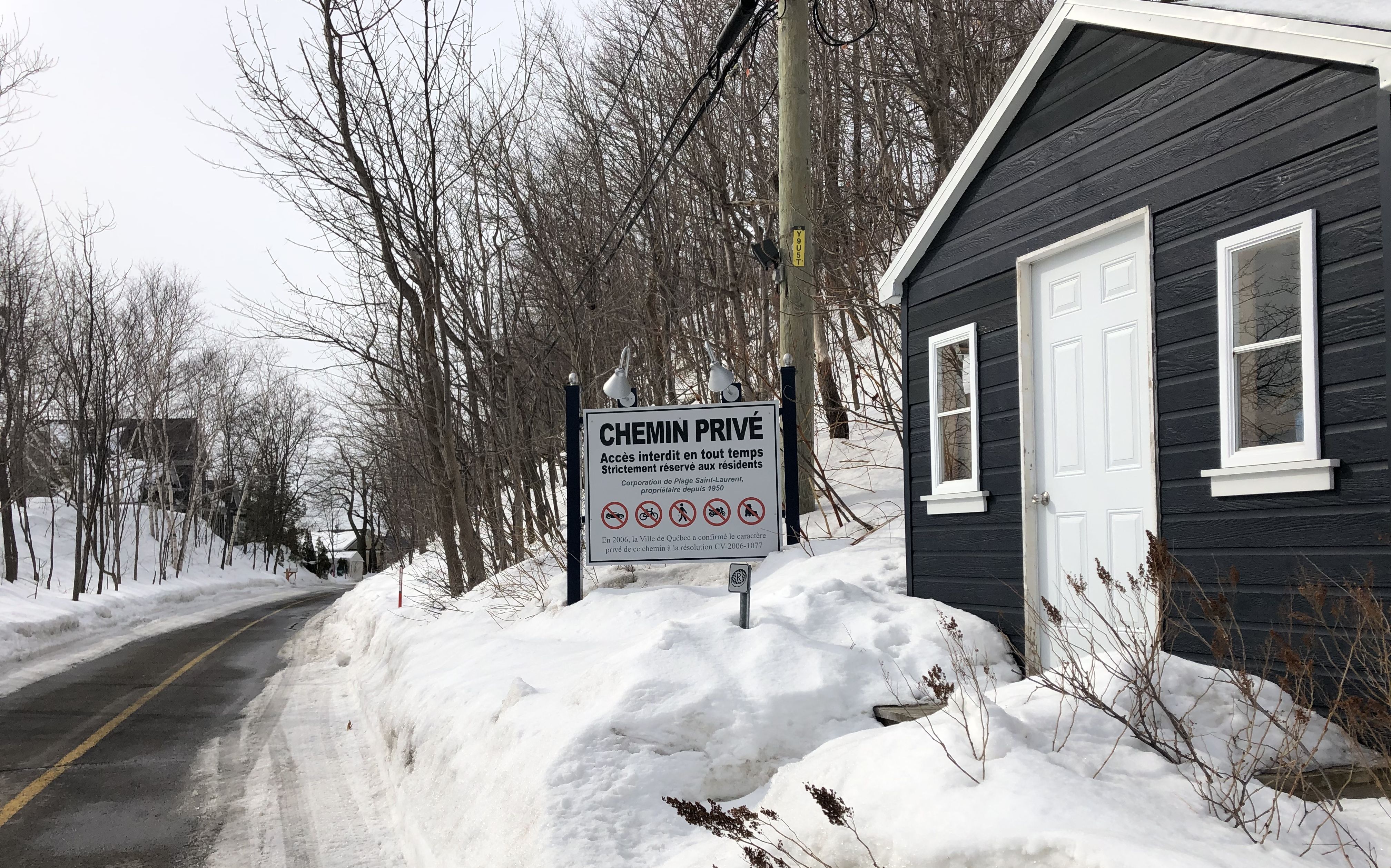 Dans son intervention, le résident de la Plage Saint-Laurent admet la présence d’un panneau avertisseur et d’un étudiant en été à la guérite. L’objectif ne vise pas à limiter l’accès à la rue, mais plutôt à y sécuriser les déplacements. En effet, la petite artère privée de 3km est étroite, sinueuse et sans trottoir. C’est dans cette optique que les propriétaires demandent à la Ville de réviser sa position.