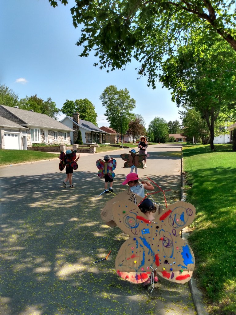 La parade des papillons a également été un grand succès. Les familles ont réalisé des ailes de papillons qu’elles ont découpées dans du carton et décorées avec de la peinture, des crayons et des articles de bricolage. Ensuite, elles ont fait apprendre à leurs enfants des chansons, et enfin, tout le monde a pris part à la parade des papillons, en respectant les deux mètres de distanciation, à la parade des papillons. Ces jeux simples et ludiques réapparaîtront de temps à autre de manière spontanée avec l’arrivée du printemps pour faire bouger les enfants, et diminuer la solitude des personnes seules et des aînés.