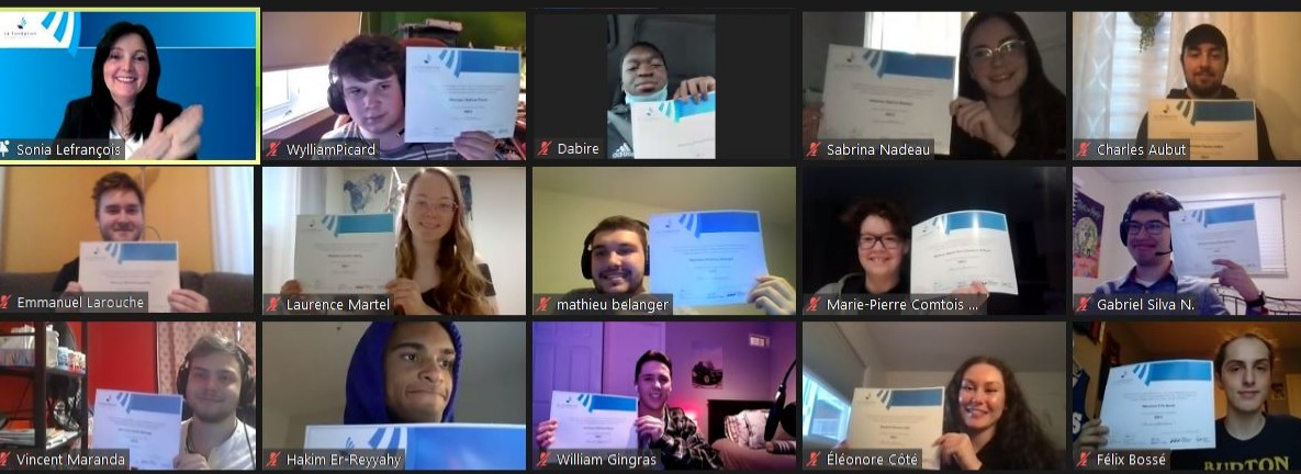 ÉDUCATION. La contribution de l’Association des parents des étudiants du Cégep de Sainte-Foy, du Syndicat des professeures et professeurs du Cégep de Sainte-Foy, de Nicole Dupuis et de Telus a permis de concrétiser la remise des bourses de persévérance Julie-Dupuis 2021. En tout, 14 étudiants du Cégep de Sainte-Foy inscrits dans les programmes techniques et préuniversitaires ont reçu un appui financier de 500$ lors d’une récente réception virtuelle.