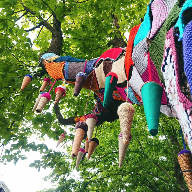 Si vous êtes passés dans le Trait-Carré au cours des derniers jours, vous avez probablement croisé du regard l’exposition Le Trait-Carré tissé serré, un projet mobilisateur qui a rassemblé la communauté pendant plus de 18 mois, dont quatre cercles de fermières, la Guilde des dentelières et brodeuses de Québec ainsi que les écoles du Plateau et Guillaume-Mathieu. Plus de 50 arbres et une dizaine de bancs de parc ont été décorés, créant un parcours de 1,6 kilomètres et exposant des milliers d’heure de travail. «Nous sommes fiers d’offrir une programmation créée par et pour la communauté», a mentionné Delphine Delmas, directrice générale du Moulin des Jésuites. L’exposition extérieure gratuite a lieu jusqu’au 5 septembre.