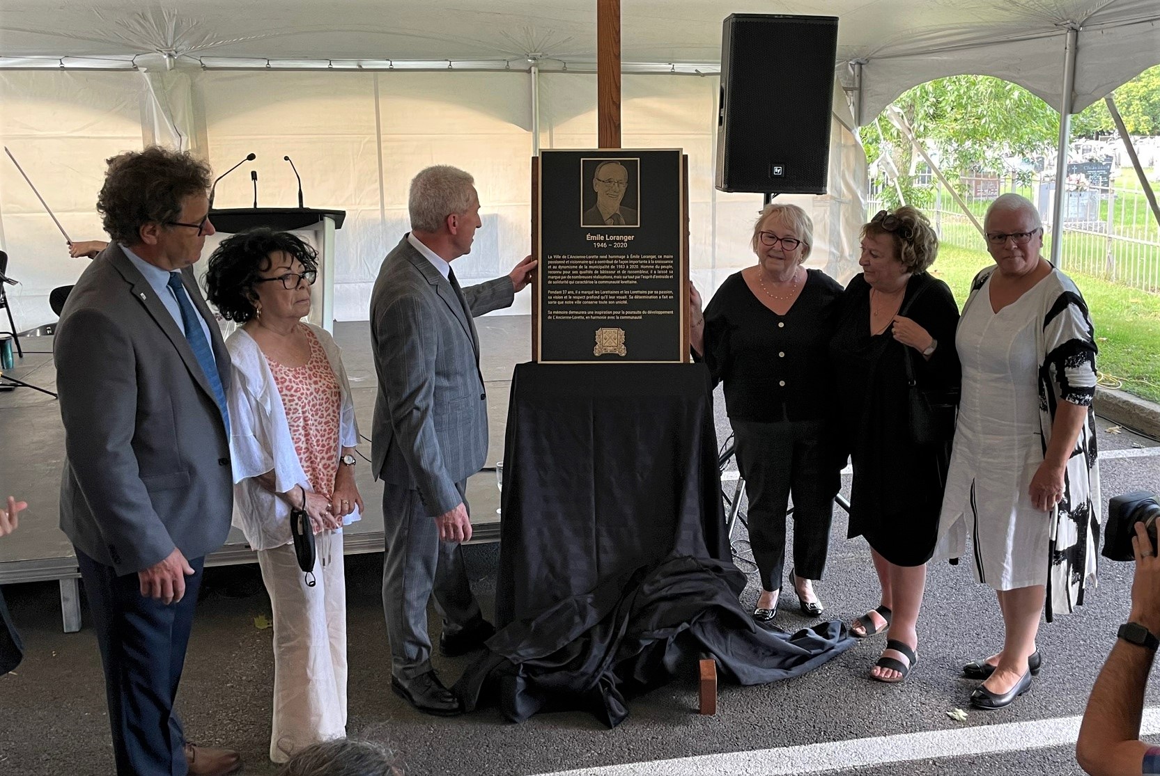 HOMMAGE. Au terme d’une cérémonie commémorative tenue près d’un an et demi après son décès, en raison de la pandémie, la Ville de L’Ancienne-Lorette honore la mémoire du maire qui a dirigé sa destinée pendant 37 ans. Afin de souligner à jamais l’ampleur de la contribution d’Émile Loranger, son nom sera désormais accolé au nouveau Point de services de la municipalité.