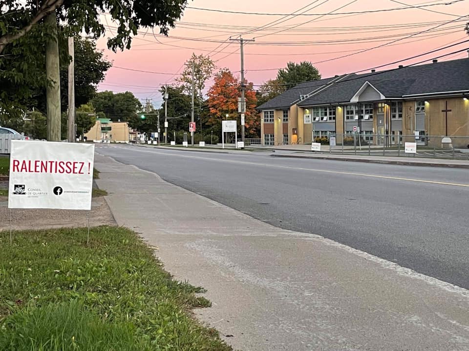 «Nous avons posé environ 25 pancartes près de l’école Saint-Claude», raconte Isabelle Chabot, administratrice du conseil de quartier. Les pancartes seront laissées là deux semaines pour ensuite être déplacées au site d’une autre école.