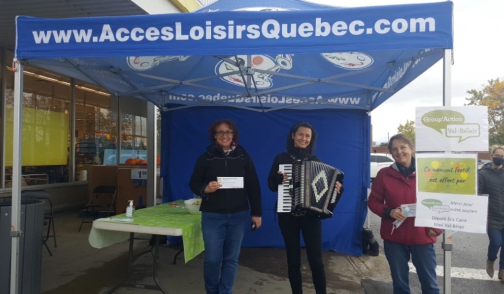 Le Group’Action Val-Bélair souhaite retrouver un réel contact avec la population, après plusieurs mois d’événements annulés. Le 1er octobre dernier, l’organisme s’est donc rendu au Maxi Val-Bélair pour y jaser avec les clients, offrir une prestation musicale d’accordéon et remettre des informations sur leurs services avec un petit chocolat.