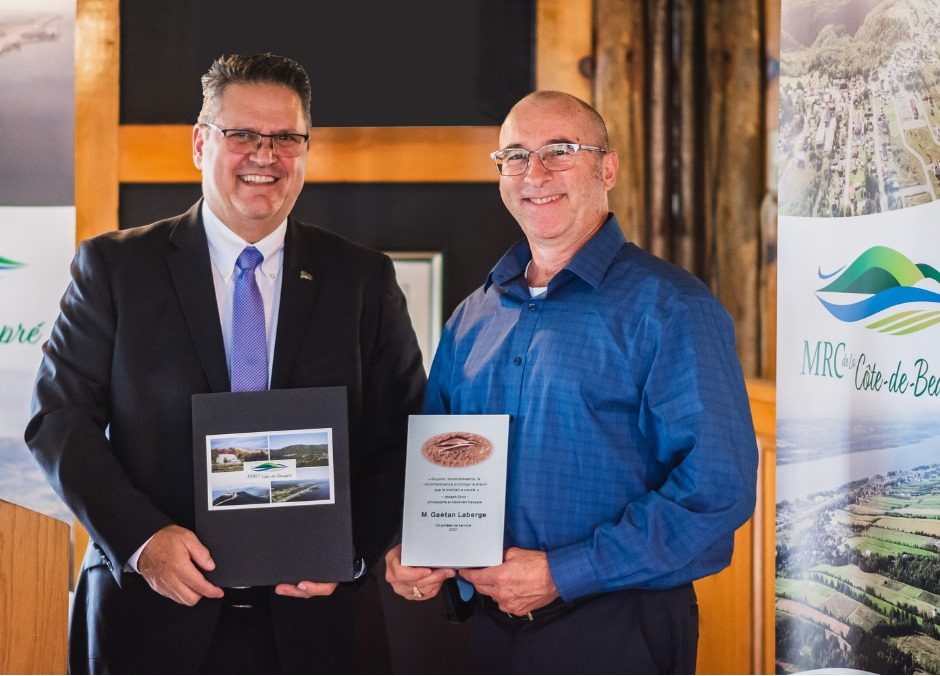 À l’occasion du 40e anniversaire de la MRC de la Côte-de-Beaupré, les années de service de quatre employés ont été soulignées. Sur les photos: Gaétan Laberge, responsable du service de l’évaluation foncière et coordonnateur des services techniques pour ses 35 années de service; Michel Bélanger, directeur général et secrétaire-trésorier pour ses 10 années de service; Mélissa Ennis, agente en développement du patrimoine immobilier pour ses 10 années de service; et Béatrice Pauly, responsable du greffe et des communications pour ses 5 années de service.