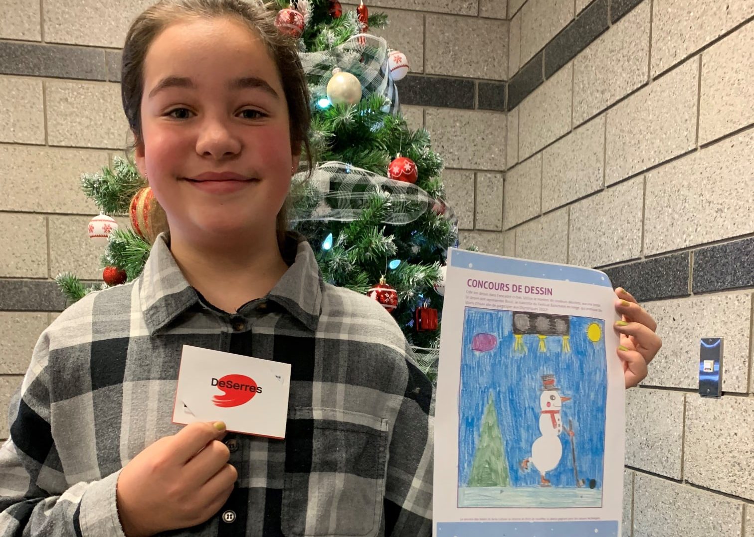 Sandrine Gendreau, 5e année, est la gagnante du concours de dessin du Festival Boischatel en neige. Son dessin a été tiré au sort parmi les plus beaux des 191 dessins reçus. Un record jamais égalé! Sandrine se mérite un chèque-cadeau d’une valeur de 50$ chez DeSerres et une inscription gratuite à un cours de son choix offert par Boischatel, en plus de voir son dessin représenter le visuel de la 23e édition du Festival dont les détails seront connus dans les prochaines semaines.