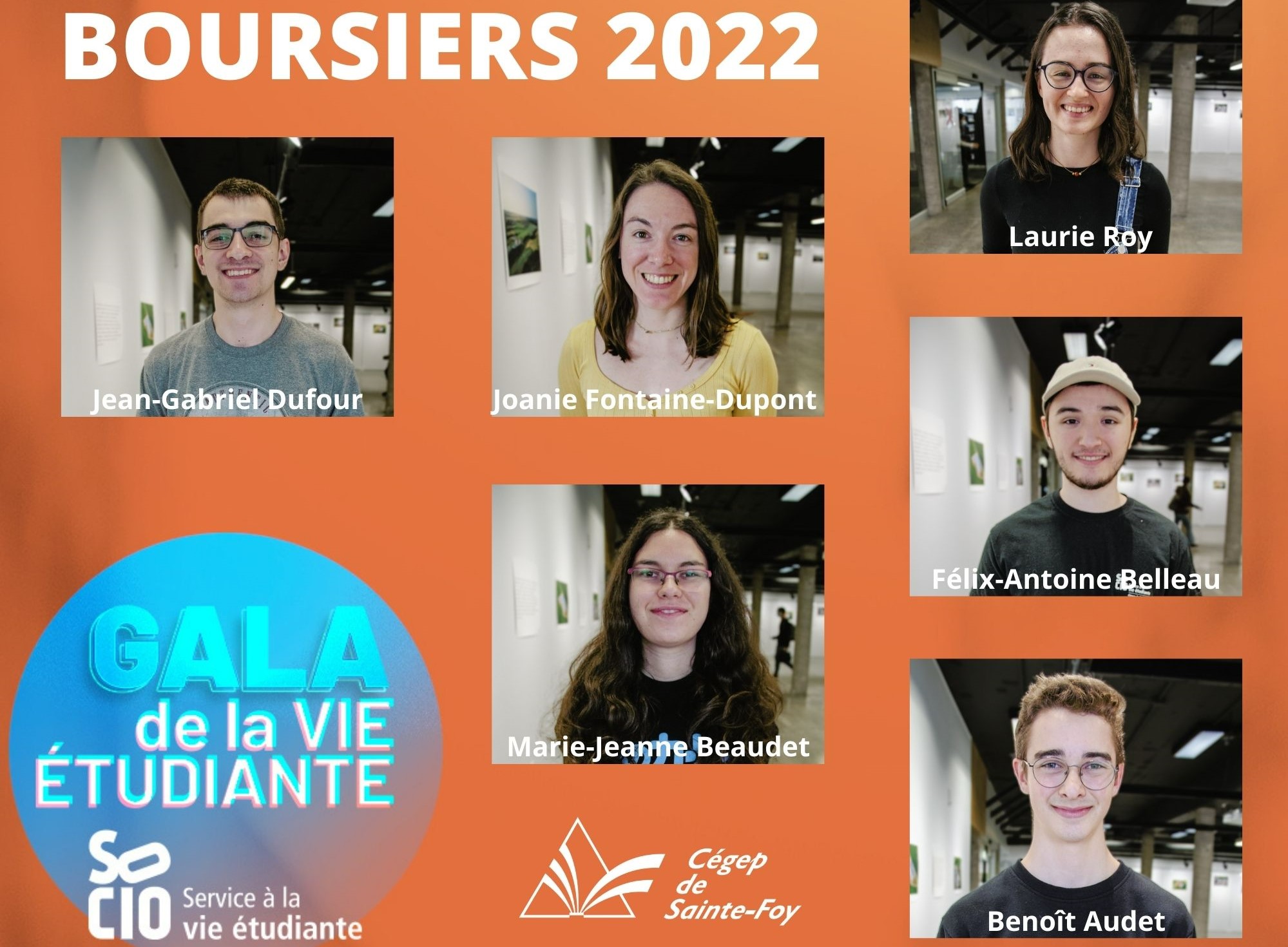 À cette occasion, six bourses individuelles de 300$ et deux bourses collectives du même montant ont été attribuées par la Fondation du Cégep de Sainte-Foy. Les étudiants méritants du Gala Socio 2022 sont: