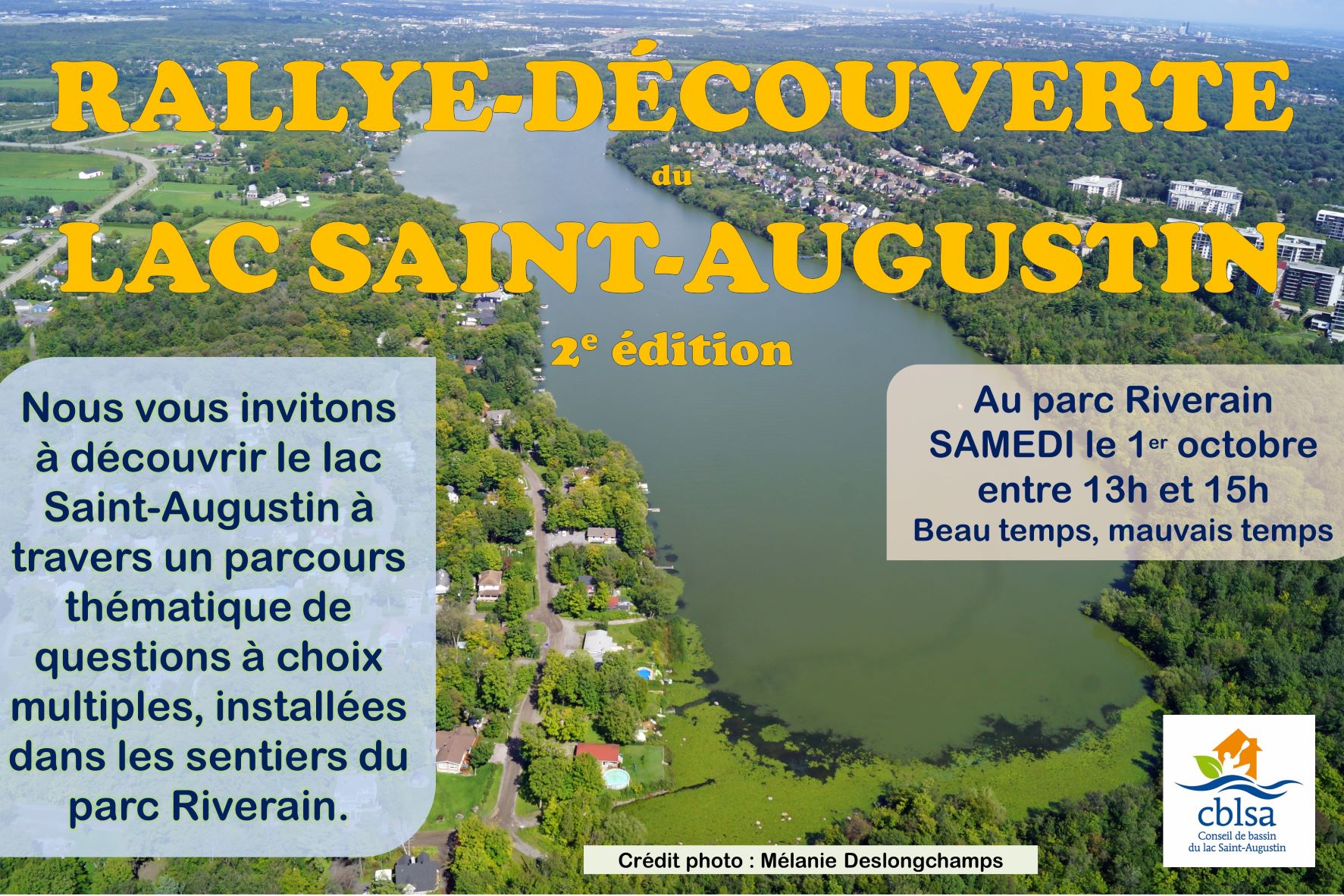 SORTIE – Le CBLSA tient la 2e édition de son Rallye-découverte du lac Saint-Augustin, ce samedi 1er octobre, entre 13h et 15h au parc Riverain. Il s’agit d’un parcours thématique de 36 questions à choix multiples sous le format de l’exemple ci-joint, qui seront installées dans les sentiers du parc.