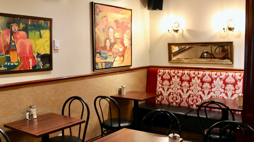 Repère des artistes depuis 1977, le café Krieghoff enchante ses clients avec de la musique française et de nombreux tableaux qui embellissent le décor. Les clients peuvent siroter un bon café et déguster un croque-monsieur dans une ambiance familiale et chaleureuse. Il y a aussi un petit hôtel au-dessus du café. L’établissement a été nommé en l’honneur du peintre qui habitait autrefois sur l’avenue Cartier. Plusieurs de ses œuvres sont d’ailleurs exposées dans le restaurant.