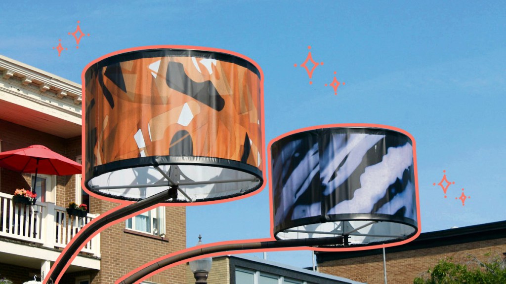 Les 34 abat-jours qui s’élèvent au-dessus de l’avenue Cartier présentent des œuvres d’art renouvelées chaque année en collaboration avec le Musée national des beaux-arts de Québec. Cette année, les œuvres ont été réalisées par la photographe Débora Flor les artistes du programme Vincent et moi, dont la mission est de soutenir l’engagement artistique de personnes vivant avec une problématique de santé mentale. Les artistes voulaient illustrer des représentations de leur animal intérieur, du passage d’une peau à l’autre, et plus largement, des concepts entourant des notions de migration et de transformation. Des codes QR sur les lampadaires offrent au public la possibilité d’en apprendre davantage sur le travail collaboratif entourant la création des œuvres.
