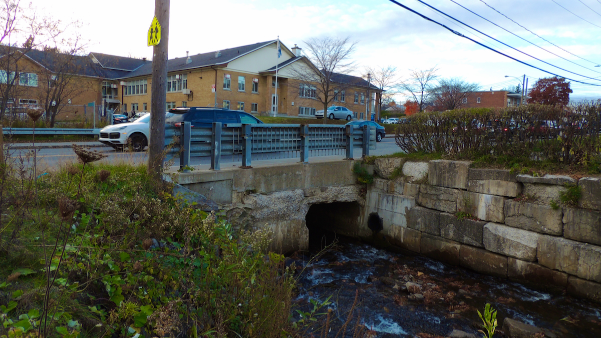 Les intentions de la Ville sont de remplacer ce ponceau par un portique en béton armé appuyé sur des pieux, de modifier la trajectoire de la rivière et de revoir la conduite d’aqueduc et la conduite sanitaire sous ce nouveau portique. La reconstruction des exutoires du réseau pluvial est aussi prévue. Un garage situé en bordure de la rivière devra également être démoli.