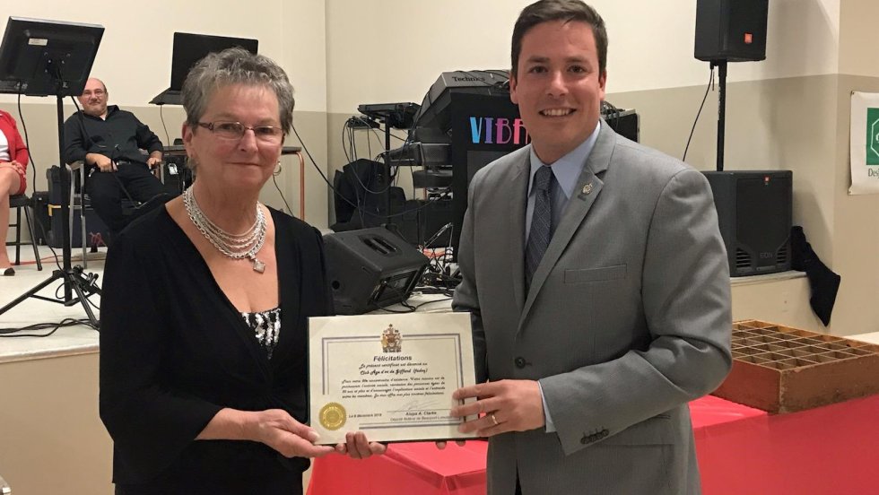 La fondation du Club d’Âge d’Or a célébré son 50e anniversaire de fondation au sous-sol de l’église de Giffard. La présidente, Céline Pageau, a reçu des mains du député fédéral
