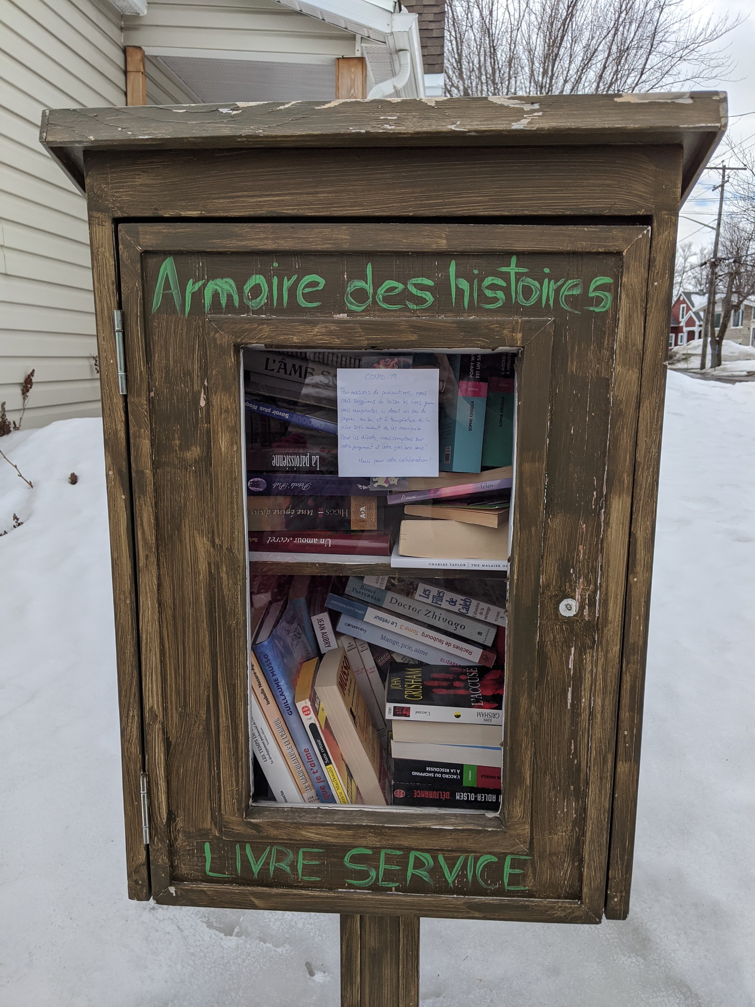 Il y a des boîtes à livres partout sur le territoire de la Ville de Québec, que ce soit sur des terrains privés ou près de commerces. Sur le groupe Facebook Bibliothèques de la rue, le responsable de la page a écrit :