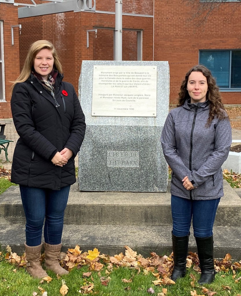 SOUVENIRS. Les résidentes de Charlesbourg Stéphanie Genest et Cynthia Hamel-Gamache ont profité du Jour du Souvenir pour observer un moment de silence près du cénotaphe de leur quartier afin de rendre hommage aux anciens combattants.