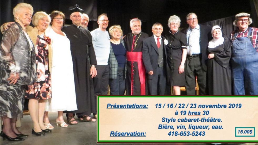 Le Théâtre des Aînés de Charlesbourg, qui existe depuis plus de 25 ans et qui offre des représentations un peu partout au Québec, présentera les 15,16, 22 et 23 novembre,