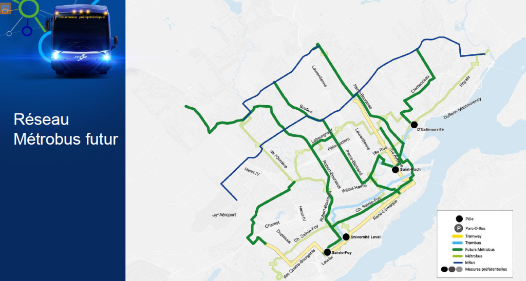 De plus, souligne Rémy Normand, président du RTC, l’ajout de parcours eXpress, qui desserviront, entre autres, les cinq Parc-o-bus de la couronne nord, rendra le service plus confortable. L’ajout de deux Parc-o-bus, l’un à Saint-Émile et l’autre à Lac-Saint-Charles, favorisera la connectivité régionale et l’intermodalité. Au fil des ans, le nombre des cases de stationnement dans les Parc-o-bus passera de 1000 à 6000.
