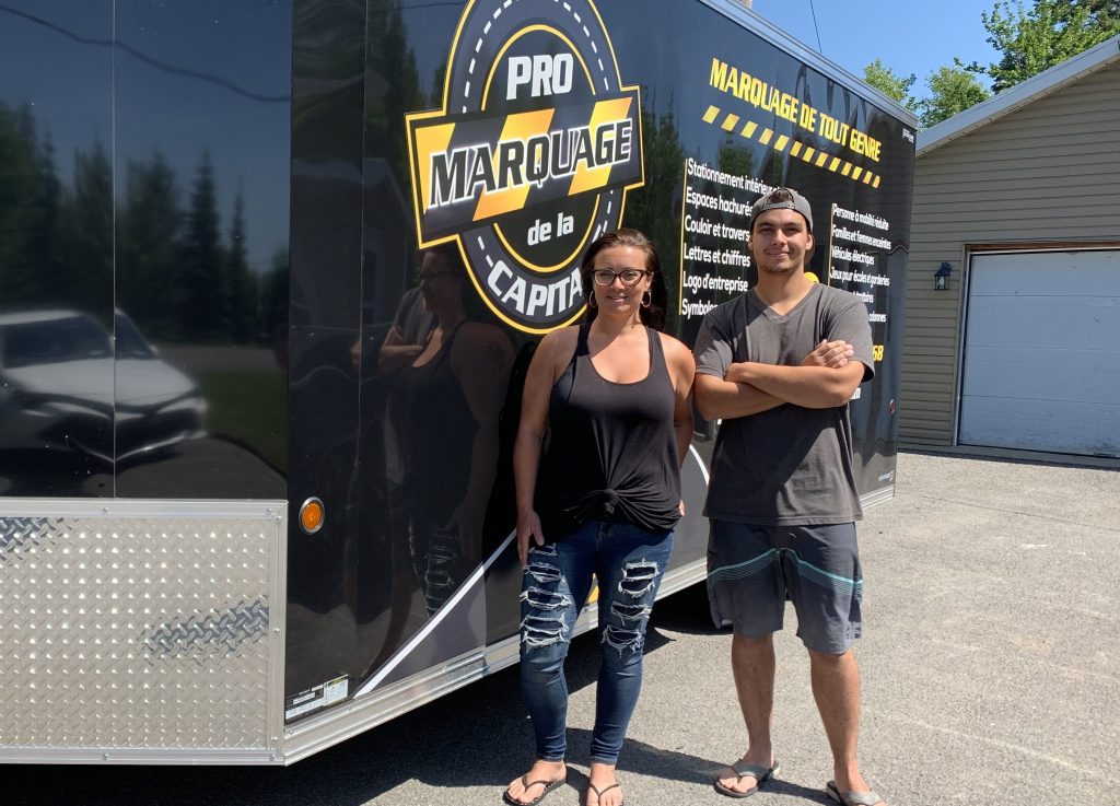 Christophe Blouin, qui a seulement 22 ans et réside à Sainte-Anne-de-Beaupré , travaillait déjà dans le domaine du lignage de stationnements depuis deux ans. C’est en discutant ensemble depuis environ un an que l’idée leur est venue. «Mon oncle, Sylvain Rodrigue, a la compagnie Pavage SM et a souvent besoin de quelqu’un pour faire du marquage, alors que Christophe en faisait déjà», explique Caroline St-Pierre qui a son cours en génie civil et qui a été chargée de projet et estimatrice en construction. «Je connais beaucoup de monde dans le domaine de la construction et je trouvais que Christophe était un gars mature pour son âge et à son affaire. Comme je suis une personne qui s’implique beaucoup dans son travail, l’idée de lancer une entreprise m’a toujours animée. Et, en travaillant autant d’heures pour un employeur, ce n’était pas bon pour ma famille», explique la maman de trois enfants.
