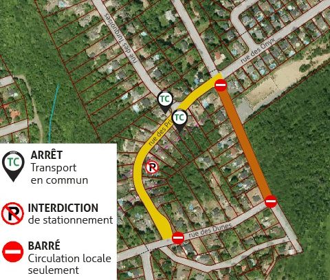 Selon les différentes étapes des travaux, l’accès en véhicule aux résidences du secteur visé pourrait être compromis. Des zones de stationnement temporaires seront mises à la disponibilité des résidents concernés qui seront avisés en temps et lieu.