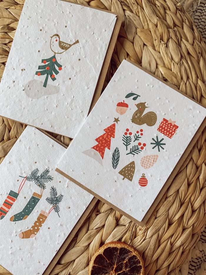 De style épuré, minimaliste, et sans texte ou très peu, les cartes se déclinent en trois collections: illustrative naïve, dorée, et noire et blanche plus glam. Elle offre aussi des cartes à semer. «Elles sont faites de carton fait à la main à partir de matières recyclées avec des graines dans le carton, donc la carte elle-même peut être plantée. Cela fait des fleurs sauvages ou du basilic dans le cas des cartes de Noël. Elles sont 100% écoresponsables et compostables. Toutes nos cartes sont également recyclables. On offre aussi des coffrets contenant plusieurs cartes, dont les gens peuvent choisir le modèle dans la boutique en ligne.»