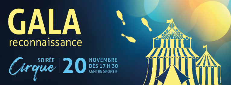 C’est sous la thématique du cirque qu’aura lieu cette année la soirée Gala Reconnaissance le samedi 20 novembre, dès 17h30, au Centre sportif de Boischatel sous le signe de l’amusement et de l’émerveillement. Un cocktail de bienvenue sera servi, suivi d’un repas trois services lors duquel des hommages seront rendus à des gens d’exception. Vous êtes invités à participer à cette soirée et à encourager vos concitoyens.