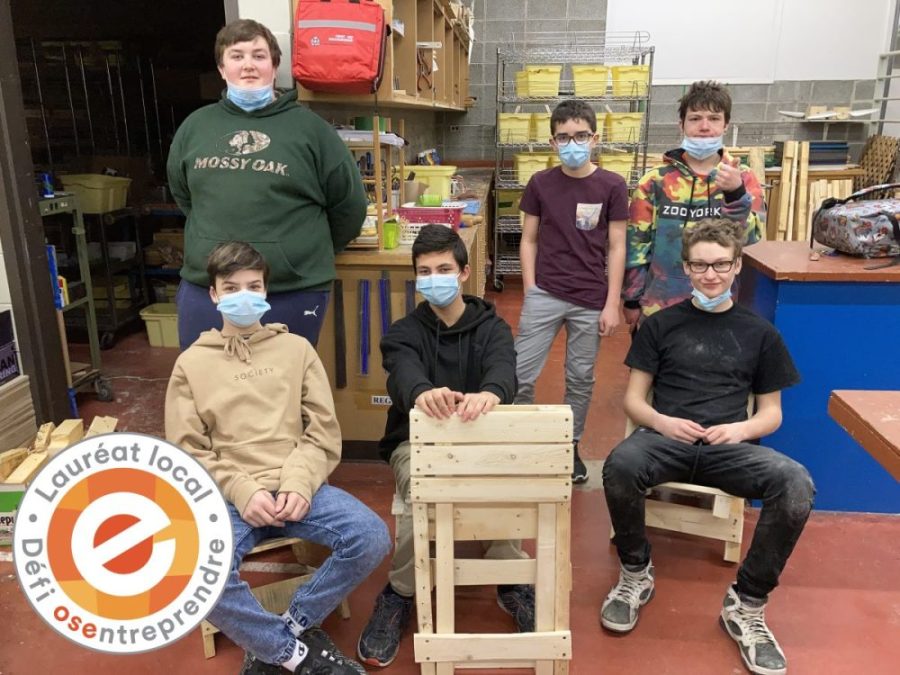 Les élèves de la classe de cheminement particulier continu (CPC) de l’École secondaire du Mont-Sainte-Anne (ÉSMSA), ont remporté récemment plusieurs prix au Défi OSEntreprendre avec leur projet de chaise pliante en bois recyclé.