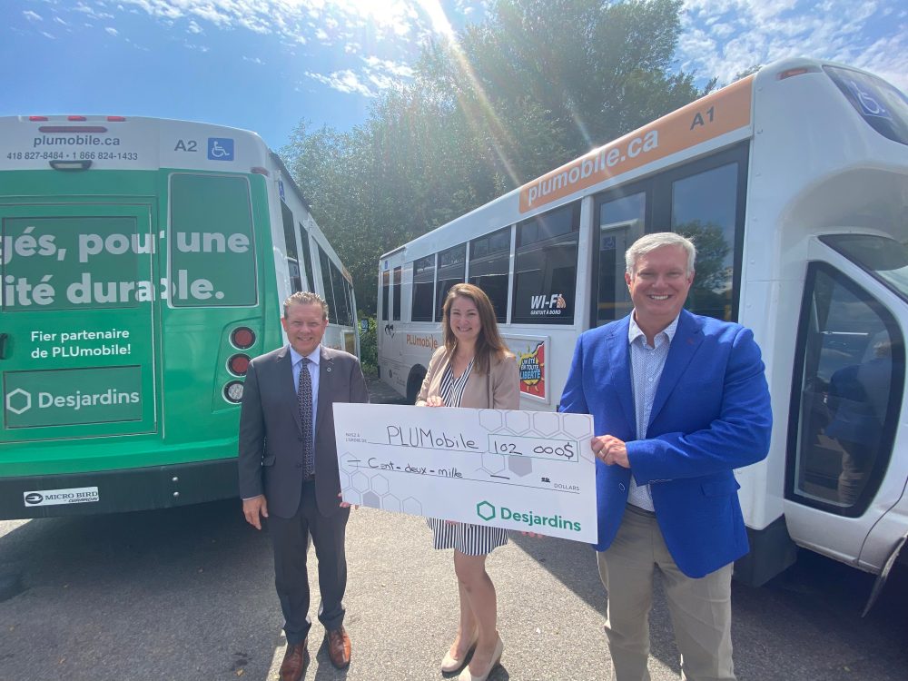 Développement Côte-de-Beaupré, gestionnaire de PLUMobile, le service de transport collectif et adapté des MRC de La Côte-de-Beaupré et de l’Île d’Orléans, a annoncé le renouvellement d’un partenariat financier pour une durée de trois ans avec les Caisses Desjardins de La Côte-de-Beaupré et de l’Île d’Orléans, d’une valeur de 102 000$.