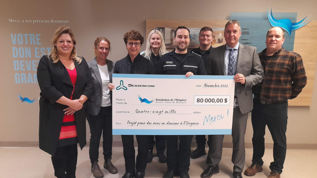 La Fondation de l’Hôpital Sainte-Anne-de-Beaupré a reçu un important don de 80 000$ de la compagnie Dessercom. Ce don à la Fondation sera dédié à un projet majeur à l’urgence de l’Hôpital Sainte-Anne-de-Beaupré. Le projet est déjà débuté et sa réalisation complète est prévue au cours des prochains mois.