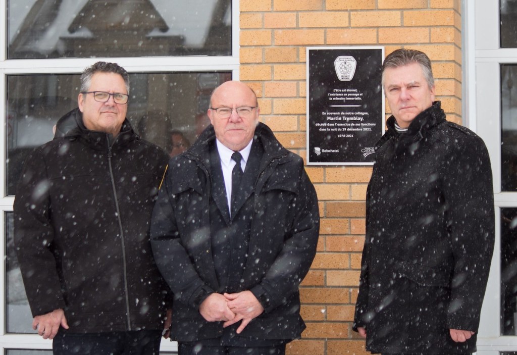 Les maires de Boischatel et L’Ange-Gardien ont dévoilé dimanche matin une plaque commémorative à la mémoire du pompier Martin Tremblay. Celui-ci est décédé dans le cadre de ses fonctions dans la nuit du 19 décembre 2021 en combattant un incendie au 626, rue des Silex à Boischatel.