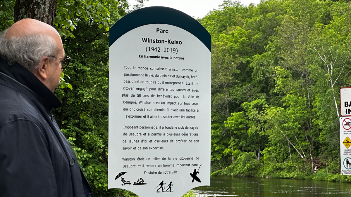 En juin dernier a eu lieu à Beaupré le dévoilement du nouvel affichage pour le parc Winston-Kelso, situé à la plage, en compagnie de membres de la famille et des amis de M. Kelso, une façon pour la Ville de souligner l’implication de cet homme engagé décédé à l’Hôpital Sainte-Anne-de-Beaupré, le 31 août 2019, à l’âge de 77 ans.