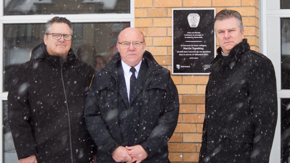 Les maires de Boischatel et L’Ange-Gardien ont dévoilé dimanche matin une plaque commémorative à la mémoire du pompier Martin Tremblay. Celui-ci est décédé dans le cadre de ses fonctions dans la nuit du 19 décembre 2021 en combattant un incendie au