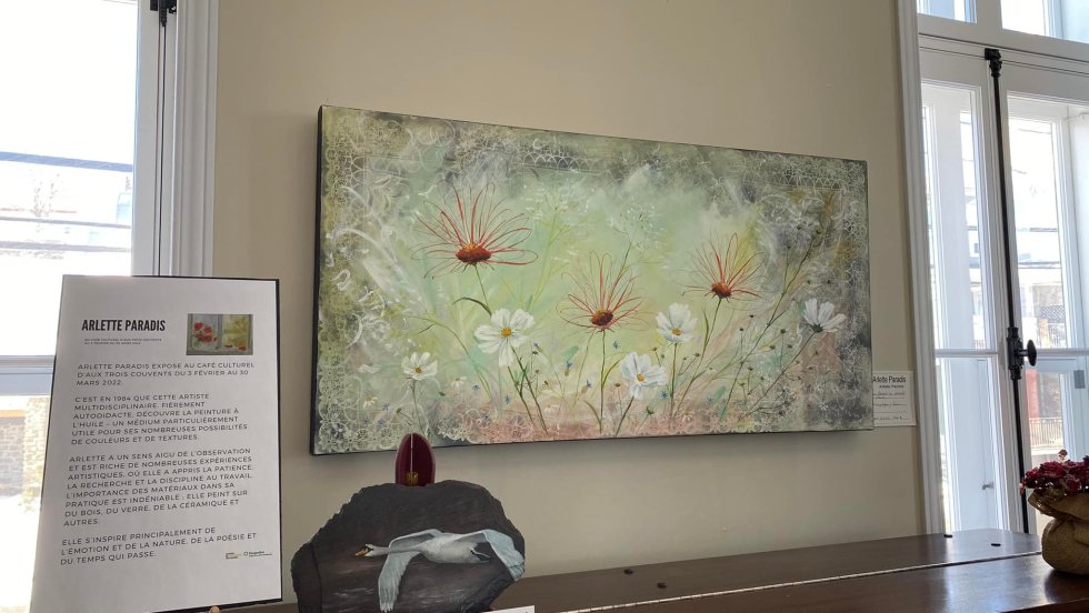 Aux Trois Couvents, lieu de découvertes culturelles, présente depuis le 3 février une toute nouvelle mini-exposition de l’artiste Arlette Paradis au café culturel. Cette artiste peint sur toutes les matières: