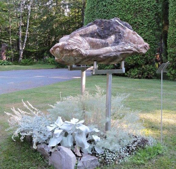 Une sculpture au jardin Galerie d’art Mont-Ste-Anne commémorant l’attentat aux Tours jumelles du World Trade Center le 11 septembre 2001 par l’artiste Riccardo Finizzia a été reproduite sur deux affiches