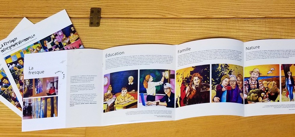 Créée en 2018-2019 avec des élèves de l’École secondaire Mont-Ste-Anne (ESMSA) et des résidents du CHSLD et des aînés du Centre de jour de l’Hôpital Ste-Anne-de-Beaupré, la fresque intergénérationnelle exposée