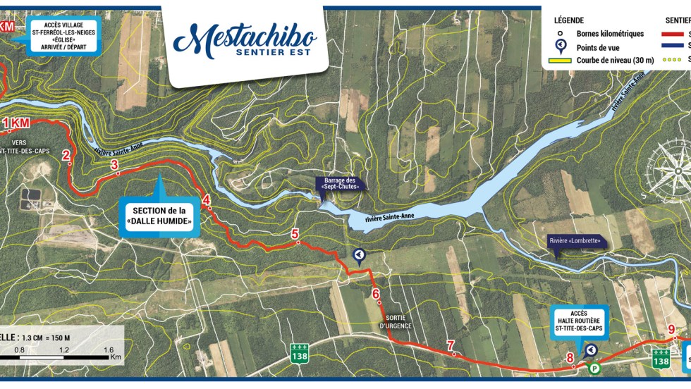 À la suite des importantes précipitations du 25 et 26 décembre dernier, le lien du sentier Mestachibo-Est est maintenant fermé entre Saint-Tite-des-Caps et Saint-Ferréol-les-Neiges. En effet le fort déluge et
