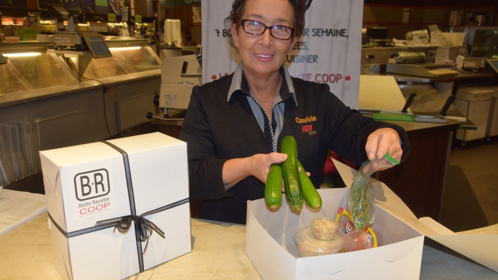ALIMENTATION. Les IGA de Loretteville, Lebourgneuf et Val-Bélair ont joint récemment le projet Boîte Recette Coop. Annette Gottang supervise la préparation des boîtes qui sont commandées à l’un des trois