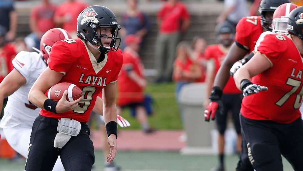 Football. Le quart-arrière, Thomas Bolduc, faisait ses débuts comme partant dans l’uniforme du Rouge et Or. Après un lent début de match, l’offensive lavalloise s’est ressaisie pour aider la formation