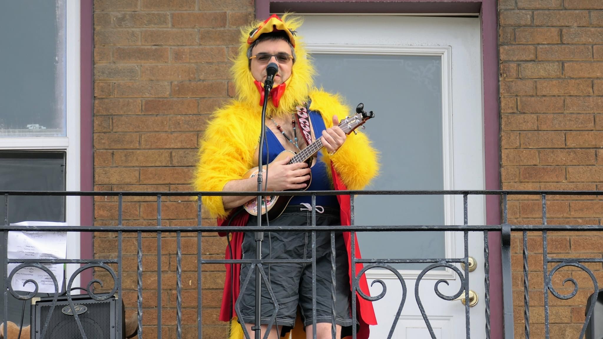 COMMUNAUTÉ. Le spectacle Les balconneries, livré par Robert Rebselj, a été propulsé par le beau temps la fin de semaine du 24 avril alors qu’une quarantaine de passants du Vieux-Limoilou qui se sont arrêtés sur la 8e Rue pour vibrer aux différents styles de musique et au caractère humoristique du natif de Winnipeg.