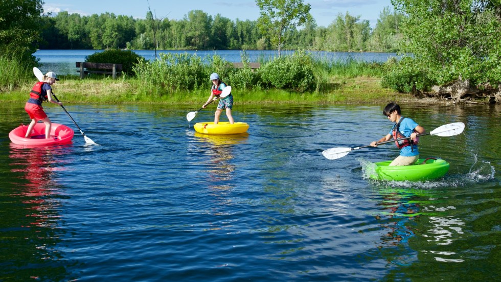 PLAISIRS D’ÉTÉ. Une nouvelle sorte d’embarcation nautique a fait son apparition à la Base de plein air Sainte-Foy. Les inventeurs du CORCL, rebaptisé «cercle à pagaie», ne visaient certes pas