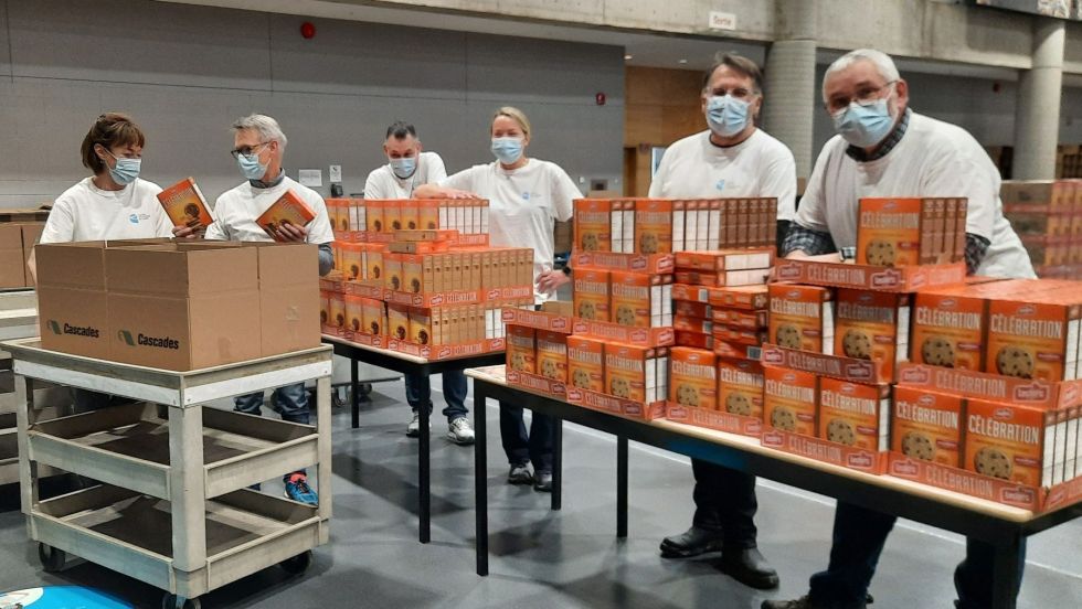 ENTRAIDE. Au cours de la présente semaine, 9000 paniers de Noël ont été préparés par 500 bénévoles de Moisson Québec au Centre des congrès de Québec. Les paniers seront ensuite