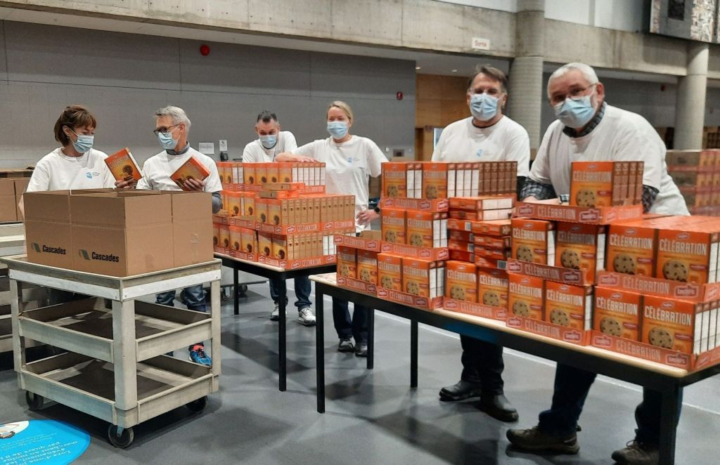 ENTRAIDE. Au cours de la présente semaine, 9000 paniers de Noël ont été préparés par 500 bénévoles de Moisson Québec au Centre des congrès de Québec. Les paniers seront ensuite distribués parmi 93 des 123 organismes accrédités dans la grande région de Québec. Ceux-ci les remettront aux personnes et aux familles dans le besoin.