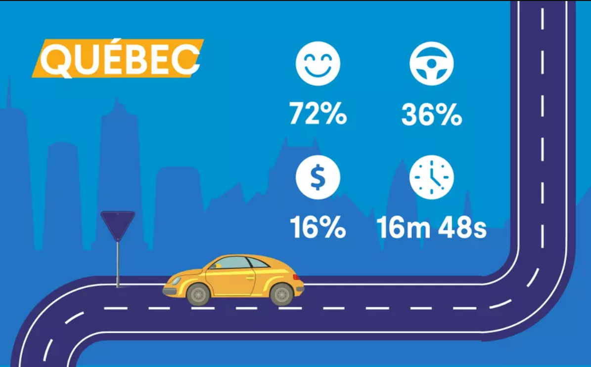 - 88% des conducteurs de Québec se sentent heureux d’y conduire au moins une fois par semaine;