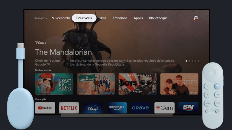 Le Chromecast avec Google TV s’adresse principalement aux personnes qui n’ont pas de télévision intelligente et qui veulent écouter le contenu des plateformes web à même leur téléviseur.