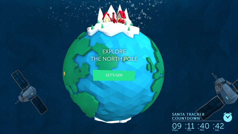 Le site sur la piste du Père Noël de Google repose sur le même principe que l’outil de NORAD. Il propose aussi plusieurs activités auxquelles on accède à partir du village du Père Noël.