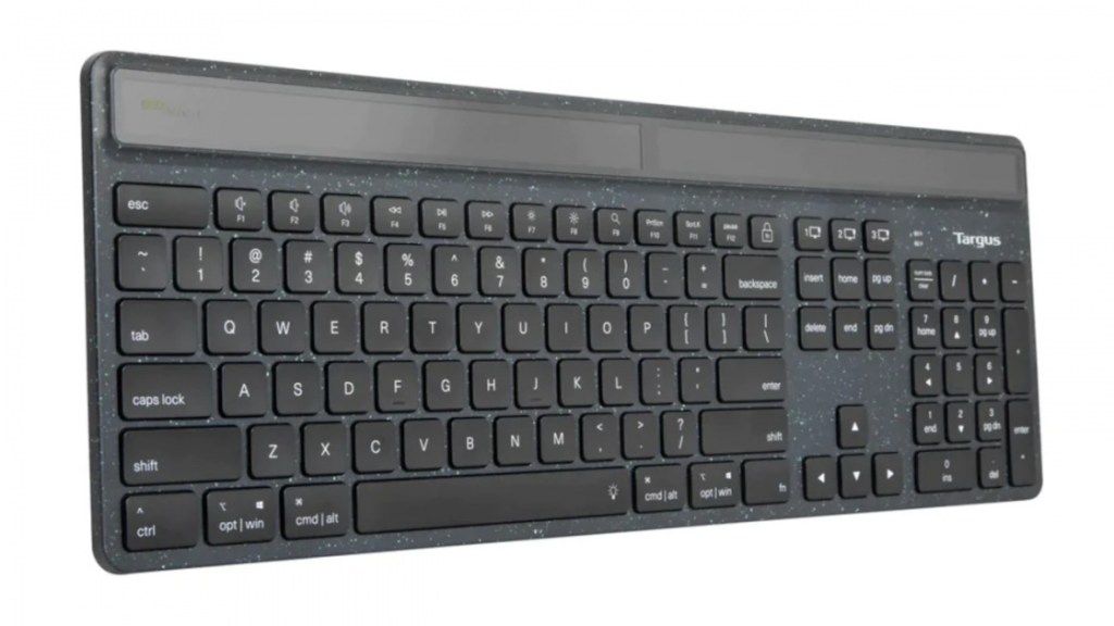 Ce qui démarque le Targus EcoSmart des claviers sans-fil conventionnels, c’est qu’il est équipé de panneaux solaires.