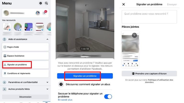 La marche à suivre pour signaler un bogue Facebook rencontré sur un téléphone.