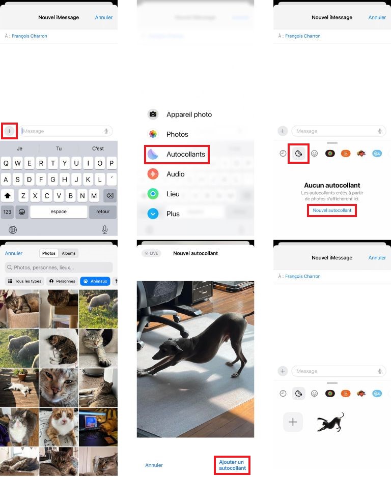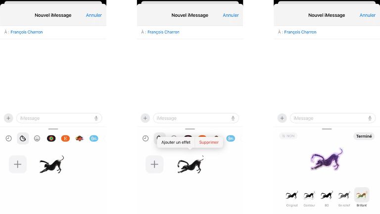 On peut soit passer directement par iMessage ou via notre galerie photo. Pour les créer via iMessage, il faut: