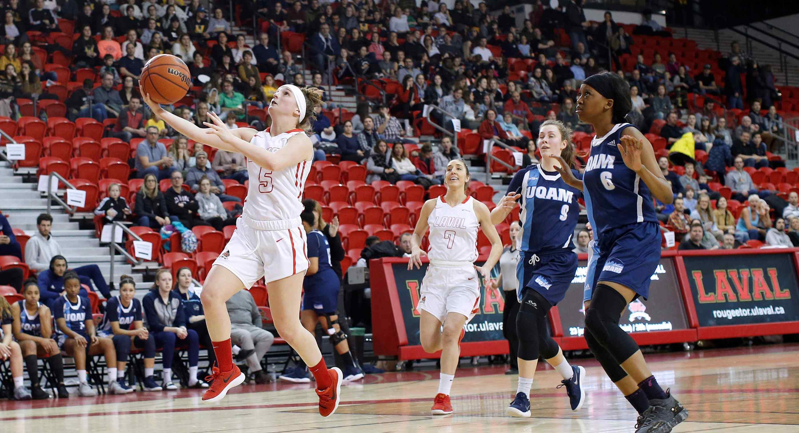 Le Rouge et Or n’a pas mis de temps à distancer ses adversaires. Carrie-Ann Auger a notamment marqué huit points en l’espace de deux minutes et après le premier quart, c’était déjà 22-8 Laval. Au deuxième engagement, c’est Claudia Emond qui a mené la charge, obtenant 10 points dans ce seul engagement. Ses deux tirs de trois points consécutifs en fin de demie ont aidé la troupe de Guillaume Giroux à retraiter au vestiaire en avant 52-25. À chaque quart son athlète dominante; au troisième, c’est Jane Gagné qui a pris les choses en main, amassant huit points. À l’aube du quatrième quart, c’était 72-39. Le barrage offensif s’est poursuivi jusqu’au sifflet final, Laval semblant incapable de rater la cible.