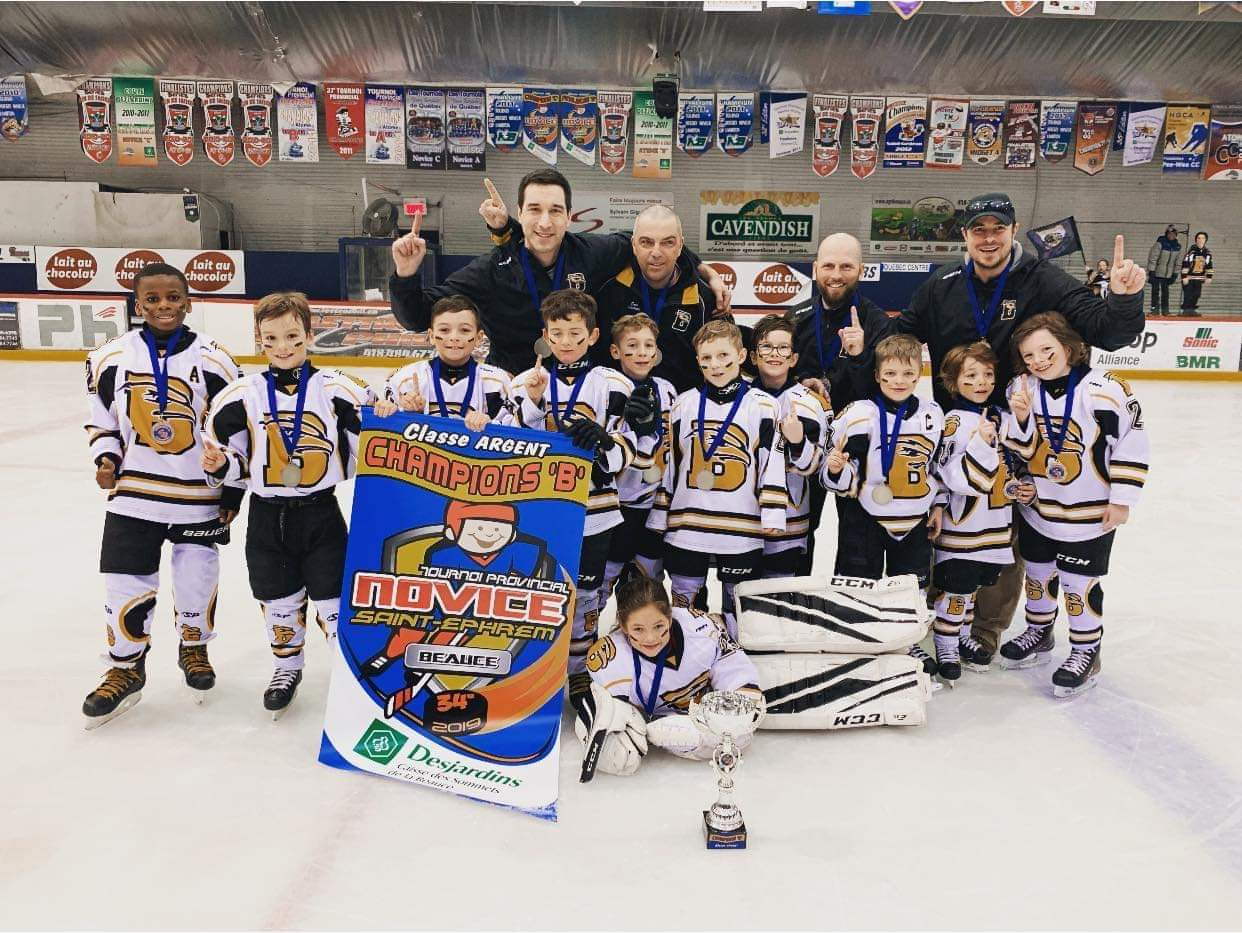 Hockey. L’équipe beauportoise des Éperviers Novice B ont affronté beaucoup d’adversité pour finalement être couronnés champions de la 34e édition du tournoi de Saint-Ephrem de Beauce. C’est en quart de finale que la formation de Québec a eu chaud alors qu’ils ont remporté la partie en tir de barrage pour continuer leur parcours. La troupe de Nicolas Valcourt n’avait pas eu beaucoup de succès récemment dans les parties décidées en prolongation. Une fois le mauvais sort conjuré, les Éperviers n’ont plus été ennuyés et ont filé jusqu’à l’obtention de la médaille d’or.